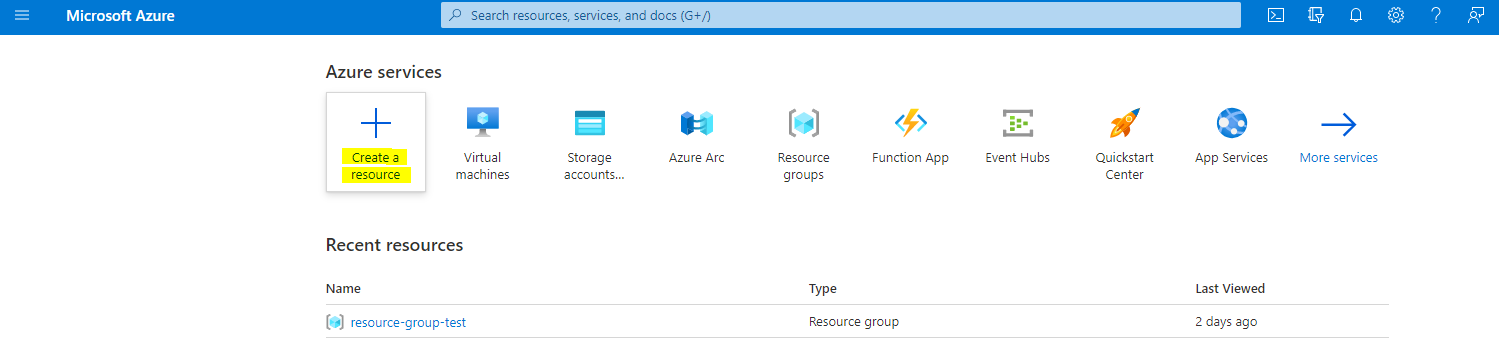 2. Select Create a resource