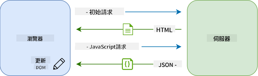 隨著網頁應用程式變得越來越複雜和互動化,一種名為 AJAX(非同步 JavaScript 和 XML) 的新技術出現了。這項技術允許網頁應用程式使用 JavaScript 非同步地向伺服器發送和接收資料,而無需重新載入 HTML 頁面,從而實現更快的更新和更流暢的使用者互動。當從伺服器接收到新資料時,可以使用 DOM API 透過 JavaScript 更新當前的 HTML 頁面。隨著時間的推移,這種方法演變成現在所謂的單頁應用程式(Single-Page Application,SPA)。